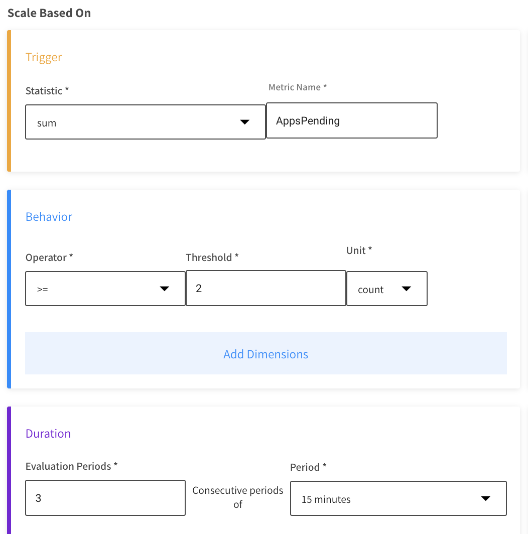 • Evaluation Periods: The number of consecutive periods to be evaluated before triggering a scale action.