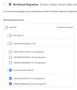 From the list on the left, choose the instances you want to migrate into your Ocean cluster by marking the checkboxes.